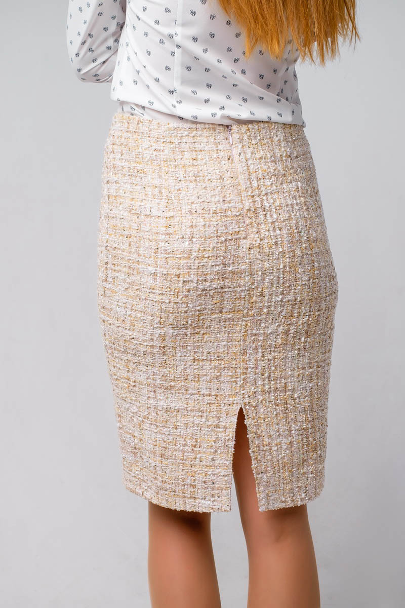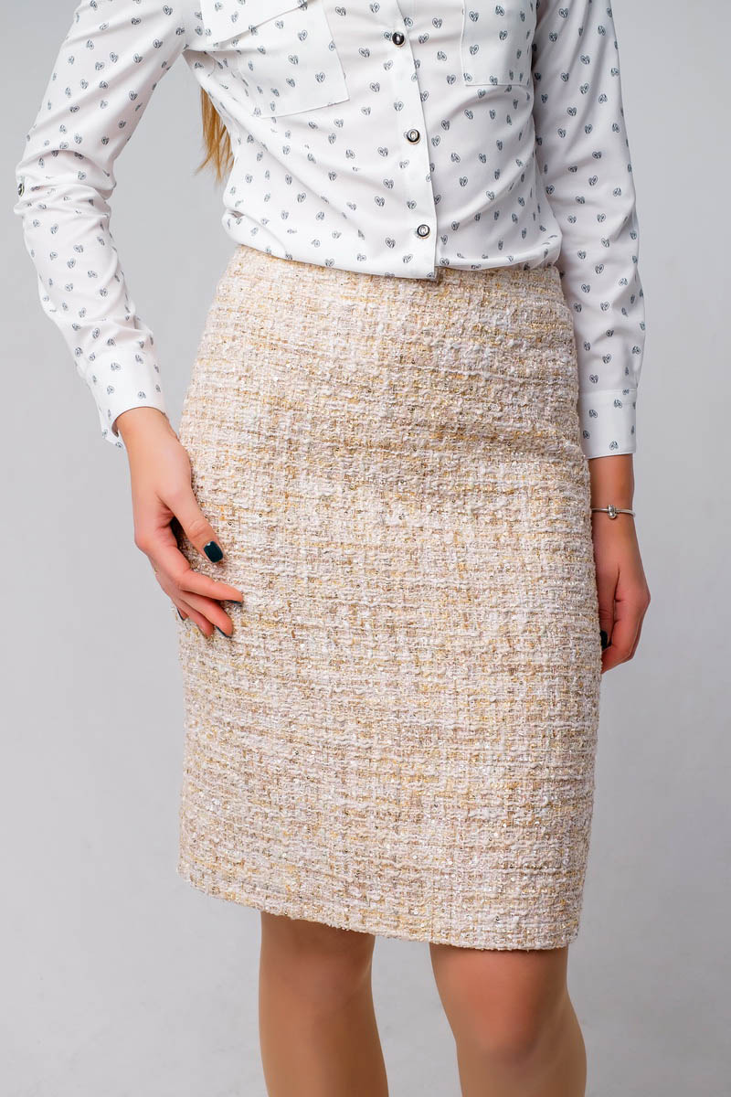 Юбка М 471 классическая - карандаш. На переднем и заднем полотнище талиевые вытачки с застежкой-молнией в среднем шве и разрез.