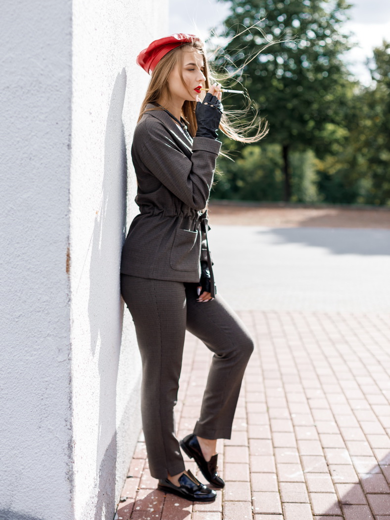 Жакет без подкладки, без застежки, на завязывающейся пояс. Плечо приспущенное, рукав длинный с отложной манжетой. Воротник шалька. В области талии внутри настрочена кулиска. Длина изделия 68 см. Состав: 70% хлопок, 30% полиэстер .
